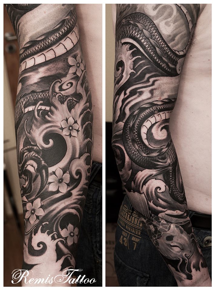 Black And Grey Dragon Sleeve 2 By Audi Tattoonow
